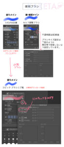 | 濃淡ブラシ 重ねベタ ※筆者配布ブラシ | FREE | 線画/細かい塗り/色ラフなど全般で使っています。 |
